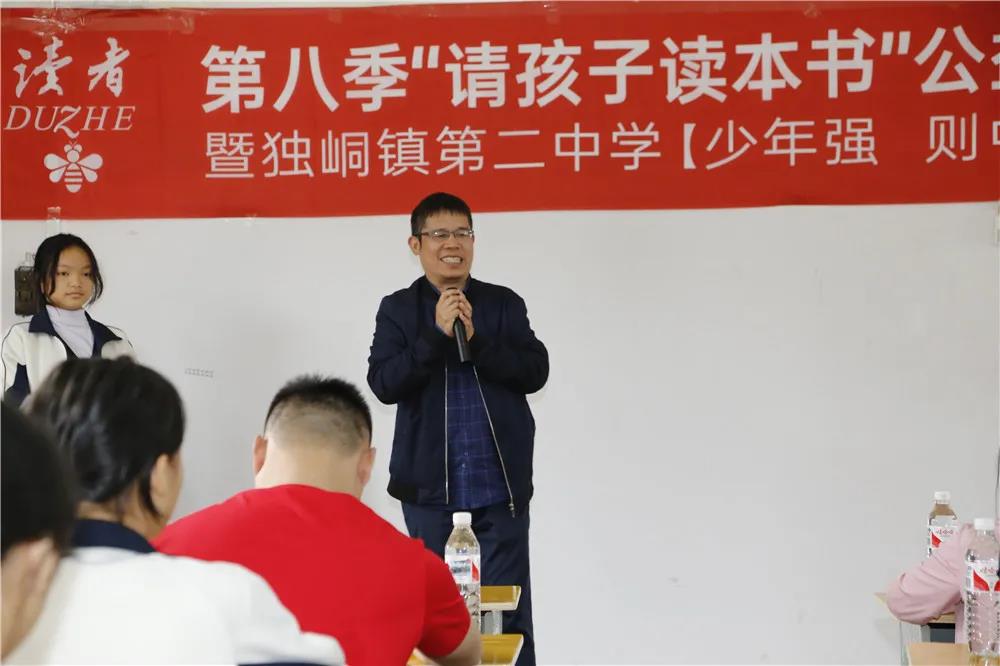 讀者雜志社副社長潘萍表示讀者雜志社一直以來都非常關(guān)注青少年的成長,不僅有大家熟知的《讀者》,還有專門為中學(xué)生打造的《讀者》(校園版)刊物,并通過三個故事生動形象地闡述了“少年強則中國強”的意義,她認為中國需要有更多散發(fā)著理性光芒的人,希望在座的學(xué)子能真正地做好閱讀、思考,未來成為散發(fā)理性光芒的人,為我們國家的建設(shè)和發(fā)展起到巨大的推動作用。