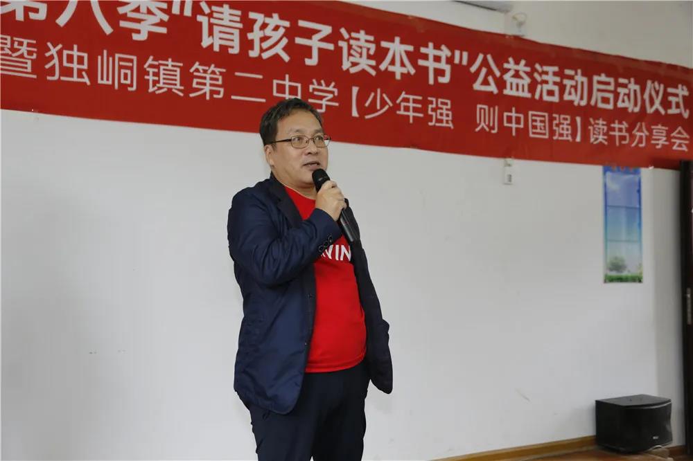 在讀書分享環(huán)節(jié),愛心人士和學(xué)校師生代表圍繞“少年強,則中國強”分享自己的讀書心得和人生感悟。生活家地板企業(yè)董事長助理丁明豪表示現(xiàn)在的孩子常常處在三個世界維度——現(xiàn)實世界、讀書世界和網(wǎng)絡(luò)世界,如何讓現(xiàn)實世界變得更美好,讓生活更美好,讓中國更強大,只有通過讀書才能實現(xiàn)。